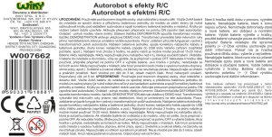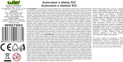 Vydáva svetelné a zvukové efekty. Otáčanie o 360 °. Rozmery 29×19×15 cm. Frekvencia 2.4 GHz. 4.8V batériový pack, súčasťou. USB nabíjanie. ovládač 2 x AA, nie je súčasťou.
