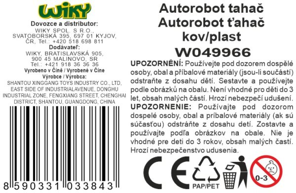 Autorobot ťahač. Rozmery 19,5x15 cm. Transformuje sa na nákladné auto. Obrázkový návod na zloženie na obale. kov/plast