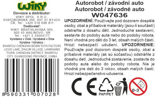 * Nenechávejte model bez dozoru na veřejných místech. * Zodpovědně likvidujte použité baterie a další elektronické součástky. * Dávejte pozor, abyste nezpůsobili znečištění (např. hlukem). * Riziko spolknutí (malé části):