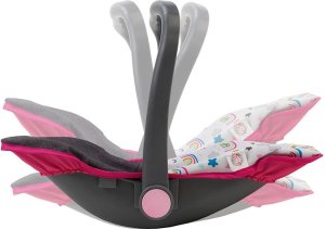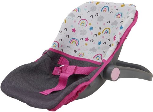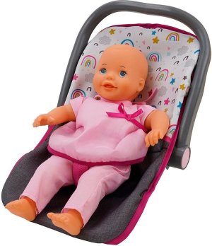 Autosedačka pre bábiku je praktický doplnok na prenášanie bábiky. Vlastnosti výrobku: - plastový rám a poťah z tkaniny - polohovateľné madlo - bezpečnostný pás - určené pre bábiky do veľkosti 41 cm - autosedačku je možné premeniť na stoličku na kŕmenie Pre deti od 3 rokov. Upozornenie: Bábika nie je súčasťou balenia!