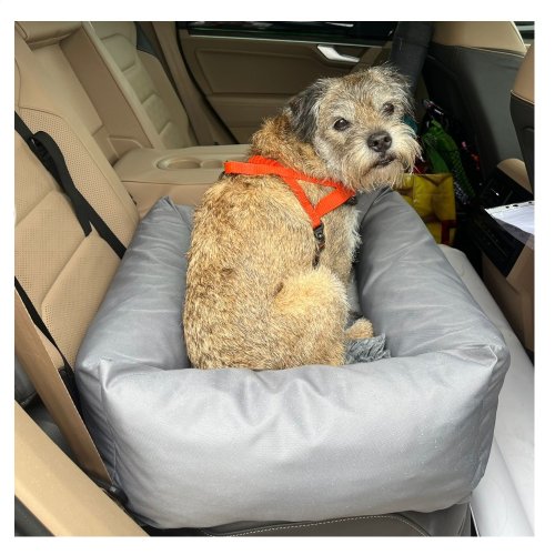 2. Akonáhle je autosedačka pre psa nainštalovaná, stačí vodítko pripnúť k postroju/obojku prostredníctvom karabíny. Karabína vám zaistí pohodlný a rýchly spôsob ako pripnúť/odopnúť vášho maznáčika.