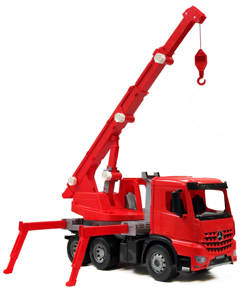 Plne mechanicky funkčný Autožeriav so 6 kolesami a licenciou Mercedes o veľkosti 70cm. S plne roztiahnutým ramenom dosahuje žeriav veľkosť až 115cm. Súčasti sú 4 bočné výsuvné stabilizačné nohy, ktoré zabraňujú aby sa žeriav neprevážil na strany, kliny pomocou ktorých je možné zaistiť kolesá proti pohybu dopredu alebo dozadu. Samotné rameno žeriava je možné otáčať o 270 °. Vysúvanie ramena a jeho zdvíhanie je ovládané pomocou obslužných koliesok. Samotný žeriavový hák je obsluhovaný pomocou navijaka a lanka. Veľkosť 70x39x28cm. Vyrobené v SR.
