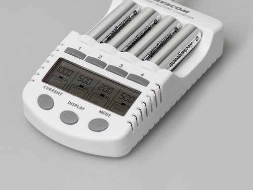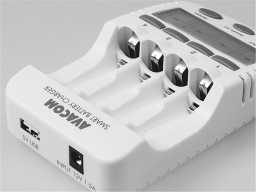 Inteligentná štvorkanálová nabíjačka ceruzkových AA a mikrotužkových AAA batérií. Nabíja Ni-MH a Ni-Cd batérie. Nabíjací prúd 200, 500, 700 a 1000mA.
