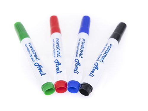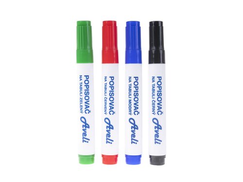 "Popisovač pre tabule a flipcharty AVELI. Sada 4 farebných popisovačov alebo jednotlivo čierny popisovač.