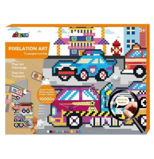 Úžasný plagát potlačený brilantnými farbami a transportnými vzormi. Spojte malé samolepky so správne očíslovanými štvorcami a dokončite majstrovské dielo.Rozmery : 32 x24 x2 cm Vek 7+