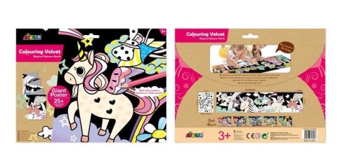 Farebný zamatový plagát je báječný dlhý banner s rozmermi 126 cm x 29,5 cm. Banner je čiastočne predtlačený farebne a obsahuje biele miesta, kde si deti môžu vyfarbiť. Sada je dodávaná s viac ako 25 zamatovými samolepkami, ktoré vytvárajú majstrovské dielo. 126 cm x 29,5 cm Vek 3+