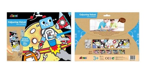 Farebný zamatový plagát je báječný dlhý banner s rozmermi 126 cm x 29,5 cm. Banner je čiastočne predtlačený farebne a obsahuje biele miesta, kde si deti môžu vyfarbiť. Sada je dodávaná s viac ako 25 zamatovými samolepkami, ktoré vytvárajú majstrovské dielo. 126 cm x 29,5 cm Vek 3+