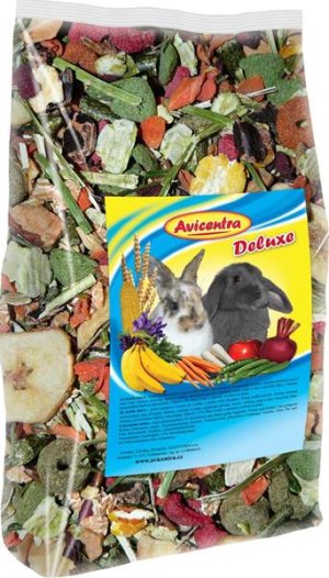 zloženie: lucerna, zelenina (mrkva, červená repa, pastyniak, petržlen), pšenica, kukurica, hrachové vločky, ovocie (jablká, banány), svätojánsky chlieb, ovos, pšeničné vločky.