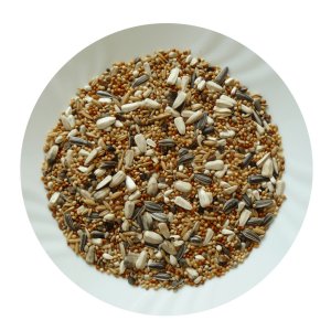 Zloženie: Proso žlté, slnečnica žíhaná, ovos nahý, svetlice farbiarska, slnečnica biela, proso biele, proso červené, pohánka, lesknica, paddy ryže, konopné semeno, ľan.