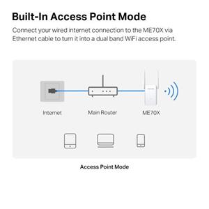 WiFi extender Mercusys ME70X AX1800 Wi-Fi Extender Vnútorné použitie Maximálna rýchlosť 1800 Mb/s Rozmery (Š x V x H) 10 cm x 13,86 cm x 6,84 cm farba Biela