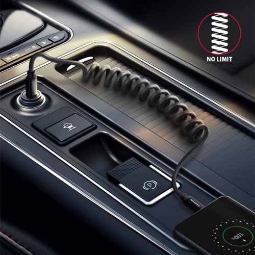 Odolný dátový a napájací kábel s predĺženou životnosťou je opatrený kovovými koncovkami, konektormi s poniklovaným povrchom a pozlátenými kontaktmi. Vodiče kábla sú vyrobené z pocínovanej bezkyslíkatej medi. Kvalitná izolácia kábla, vyrobená z flexibilného TPE, zaručuje maximálnu odolnosť, ale zachováva aj dostatočnú ohybnosť. Vďaka krútenému a naťahovaciemu prevedeniu kábel zaberá minimum miesta a je tak ideálnym doplnkom do auta. V skrátenom stave je kábel dlhý len 50 cm a nikde neprekáža. V natiahnutom stave pohodlne dosiahne 110 cm ďaleko od zásuvky.