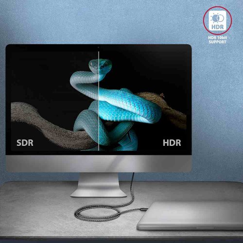 • Podpora protokolu DisplayPort 1.4a, 2.0 pre prenos zvuku a videa až do rozlíšenia Full Ultra HD 8K @ 60Hz, HDR10 – je nutný USB-C port s podporou DisplayPort Alternate Mode (DP Alt Mode) alebo Thunderbolt 3/4 port.