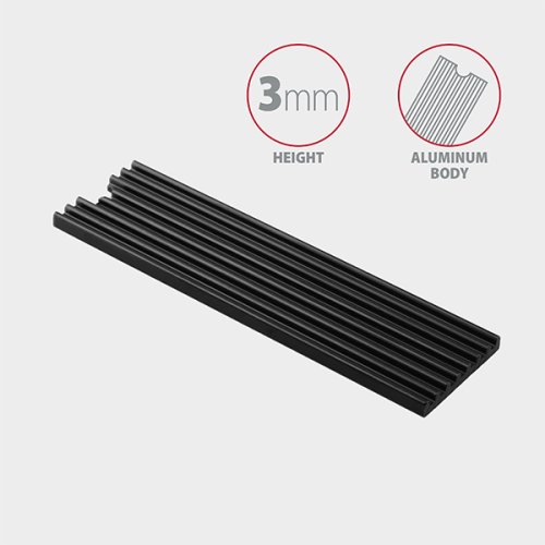 Rebrovaný hliníkový chladič vysoký 3 mm, napomáha lepšiemu odvodu tepla vzniknutého pri prevádzke M.2 SSD disku a umožňuje tak znížiť teplotu disku až o 15 °C. Predlžuje sa tak životnosť M.2 SSD disku a zamedzí sa spomaľovaniu rýchlosti disku tzv. „Thermal Throttling“.