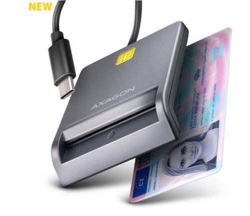 Kompaktná stolná čítačka Smart card/ID card AXAGON CRE-SM3TC FlatReader s USB 480 Mbps rozhraním. Je vhodná najmä ako čítačka občianskych preukazov na použitie s mobilnými telefónmi a počítačmi vybavenými USB-C vstupom. Obojstranný USB-C konektor zjednodušuje použitie tým, že odstraňuje nutnosť správneho nasmerovania konektora pri zapojení do telefónu alebo notebooku.