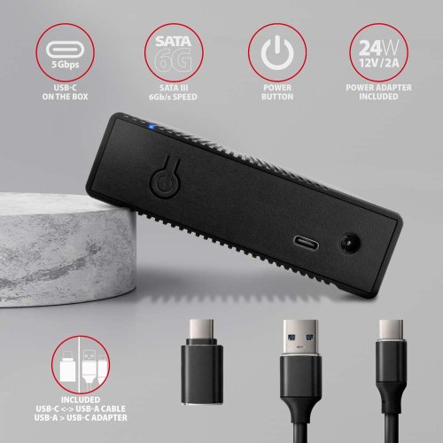 Vďaka USB 3.2 Gen 1 rozhraniu je prenosová rýchlosť až 5 Gb/s. SATA 6G rozhranie s podporou UASP dovolí užívať si rýchlosť moderných diskov. Čítanie SMART . informácií monitorujúcich stav disku. Podpora uspávania pripojeného disku aj boxu.