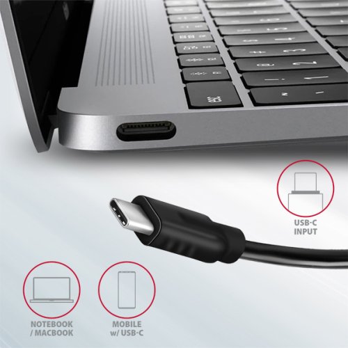 Vstup (pripojenie k notebooku): • USB 10Gbps (USB 3.2 Gen 2), konektor USB-C male. • Kompatibilný s USB 3.2 Gen 1, USB4 a Thunderbolt 3/4.