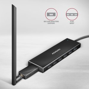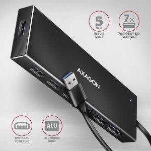 Rozbočovač v odolnom hliníkovom prevedení pripojí k počítaču až sedem USB zariadení súčasne . Veľkou výhodou je možnosť externého napájania hubu z akejkoľvek nabíjačky mobilných zariadení s micro USB konektorom. Zvládne trvalé pripojenie až troch externých diskov aj bez vlastného napájania as vlastným napájaním je možné pripojiť až päť 2,5" magnetických externých diskov. Zároveň je možné nabíjať smartphony, tablety, powerbanky a ďalšie zariadenia prúdom až 1,5 A (v závislosti na použitej nabíjačke). Rozbočovač je možné používať aj bez počítača, pokiaľ je možné ho používať aj bez počítača. nabíjací USB hub. Pripojenie hubu k počítaču je indikované modrou LED.