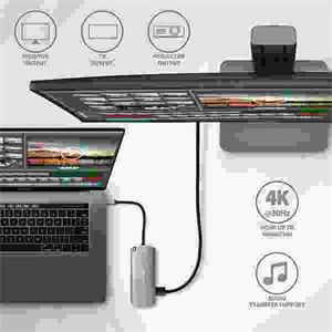 HDMI výstup poskytuje kvalitný obraz až do rozlíšenia 4K/30Hz Ultra HD a podporuje prenos viackanálového zvuku. Pre správne fungovanie video výstupu je nutné, aby notebook mal USB-C port s podporou DisplayPort Alternate Mode (DP Alt Mode) alebo port Thunderbolt 3.