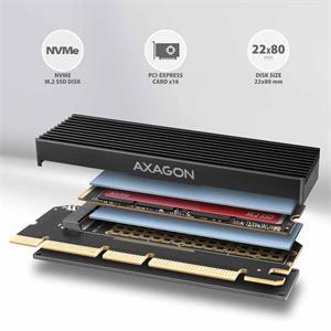 Adaptér je vybavený rebrovaným hliníkovým krytom disku, ktorý slúži ako pasívny chladič. Vďaka veľkej chladiacej ploche a dodávaným teplovodivým podložkám, chladič odvádza teplo z oboch strán M.2 disku a dosahuje tak maximálnu efektivitu chladenia. Je tak ideálny aj pre náročné PCIe 5.0 NVMe SSD disky.