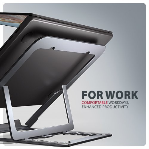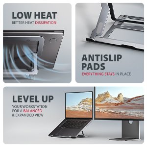 AXAGON STND-LAG je stojan na notebook či tablet, ktorý zaisťuje pohodlie a zlepšuje ergonómiu pri práci. Je ideálny pre zariadenie s uhlopriečkou od 10" do 17.3" a umožňuje nastavenie až ôsmich polôh . Ľahko tak nájdete ideálny sklon stojana pre maximálne uvoľnenie vašich krčných a chrbtových svalov. Užite si komfortné pracovné prostredie s kompaktným a prenosným stojanom, ktorý sa dokonale prispôsobí vašim potrebám, či už pracujete doma, v kancelárii, alebo na cestách. Podstavec je vyrobený z hliníkových odliatkov garantujúcich dlhú životnosť a spoľahlivosť. Vďaka protišmykovej úprave sa nemusíte obávať nežiaducich pohybov - vaše zariadenie zostane pevne na svojom mieste, a to bez poškodenia povrchu notebooku či podložky. Tieto starostlivo navrhnuté vlastnosti zaručujú perfektnú stabilitu pre váš notebook , tablet alebo dokonca obľúbenú knihu , čo vám poskytne pokoj a pohodlie pri každodennom používaní. Veľkou výhodou je možnosť nastavenia až ôsmich polôh. Vďaka tomu môžete notebook zdvihnúť do výšky od 91 do 150 mm . Tým získate ďalšiu pracovnú plochu v správnej úrovni očí, čo výrazne zlepšuje ergonómiu a pohodlie pri práci, a zároveň zvyšuje vašu produktivitu. Stojan je možné ľahko zložiť do kompaktných rozmerov , čo umožňuje pohodlné prenášanie kamkoľvek potrebujete. Jeho elegantný dizajn v šedej farbe nielen štýlovo doplní váš pracovný stôl, ale taktiež prináša praktické funkcie, ktoré oceníte pri každodennom používaní. Prevedenie zaisťuje ideálny odvod tepla z vášho notebooku, čím zvyšujú jeho výkon a životnosť.