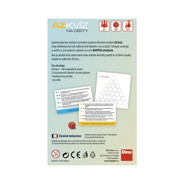 Obľúbená súťažná vedomostná hra AZ kvíz teraz v cestovnej verzii. 600 úplne nových otázok. Vek 13+