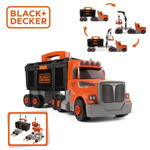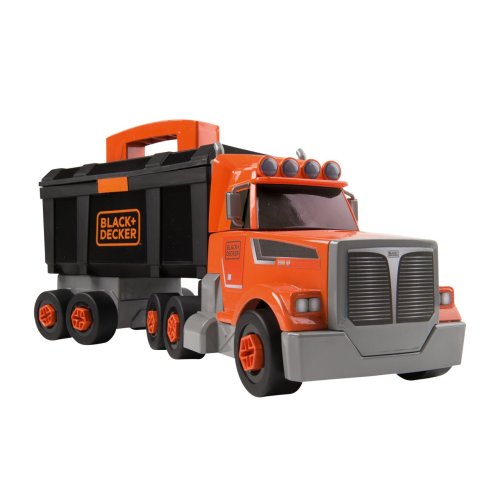 Stavebné nákladné auto, príves má odnímateľnú schránku na náradie. Obsahuje mnoho doplnkov, z ktorých je možné zostaviť žeriav. Rozmery rozbaleného výrobku: 43 x 17,40 x 13,30 cm. Vhodné od 3 rokov.