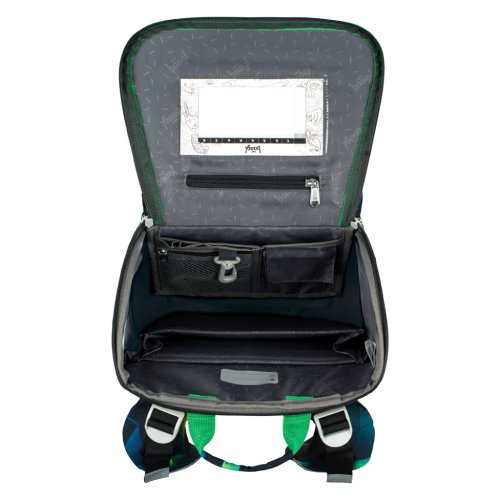 • Vnútri aktovky je priehľadné vrecko na rozvrh a vnútorný organizér umožňujúci rovnomerné rozloženie hmotnosti, doplnený gumičkou na fixáciu.