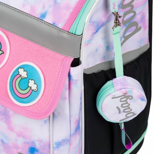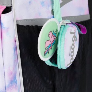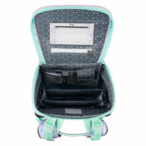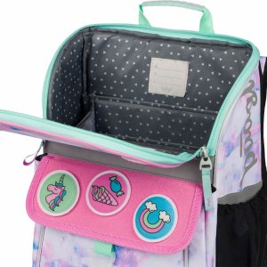 • Vnútri aktovky je priehľadné vrecko s rozvrhom a vnútorný organizér umožňujúci rovnomerné rozloženie hmotnosti, doplnený gumičkou na fixáciu.