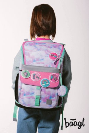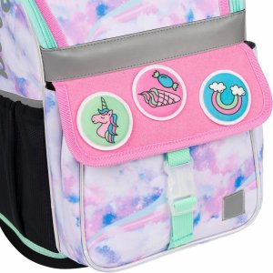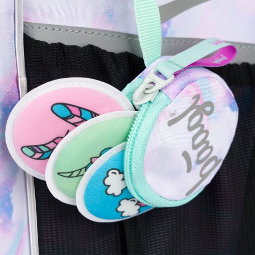 • Na klopu predného vrecka môžete ľubovoľne pripevňovať odznaky, ktoré sú k aktovke ako darček.