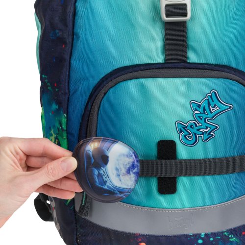 • Jednoduchá inštalácia pomocou suchého zipsu umožňuje rýchlu výmenu odznakov podľa aktuálnej nálady či záujmov dieťaťa.