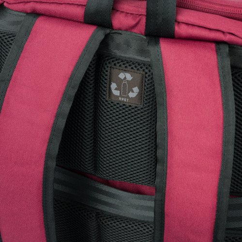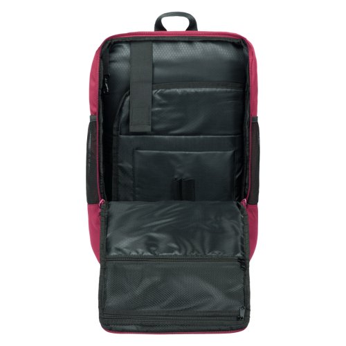 • Ideálne na cesty ako príručnú batožinu do lietadla. Ďalšou výhodou je chrbtový pruh, ktorý slúži na fixáciu batohu na madlách kufra.