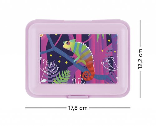 • Plastový box na desiatu vo fialovej farbe • Box má uzatváranie na jeden zámok a deliacu prepážku.• Neodporúčame umývať v umývačke