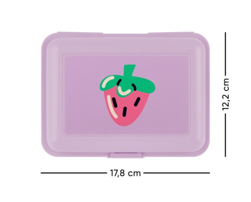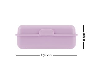 • Plastový box na desiatu vo fialovej farbe. • Box má uzatváranie na jeden zámok a obsahuje deliacu prepážku. • Neodporúčame umývať v umývačke.