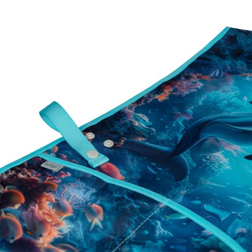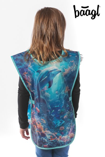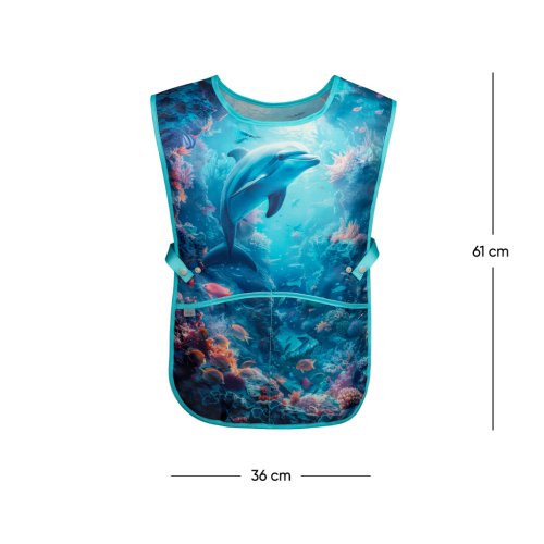 • Detská zástera na výtvarnú výchovu, pracovné činnosti a ďalšie krúžky. • V dolnej časti zástery sú dve vrecká. • Vyrobené z umývateľného materiálu.