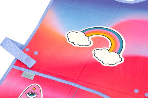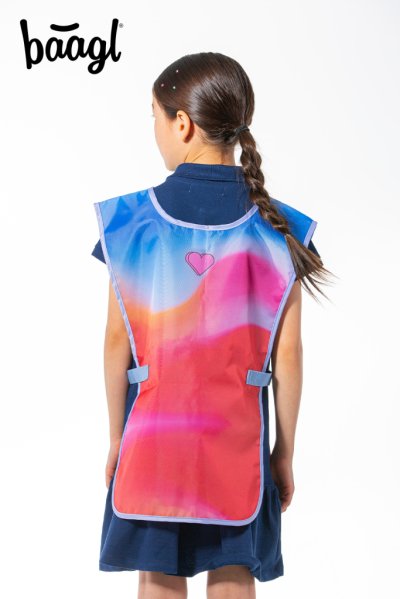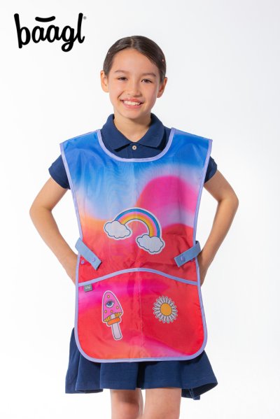 • Detská zástera na výtvarnú výchovu, pracovné činnosti a ďalšie krúžky. • V dolnej časti zástery sú dve vrecká. • Vyrobené z umývateľného materiálu.