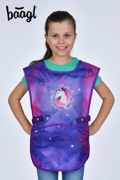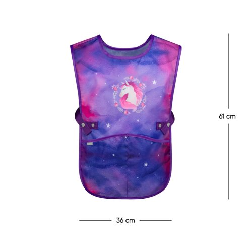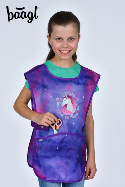 • Detská zástera na výtvarnú výchovu, pracovné činnosti a ďalšie krúžky. • V dolnej časti zástery sú dve vrecká. • Vyrobené z umývateľného materiálu.