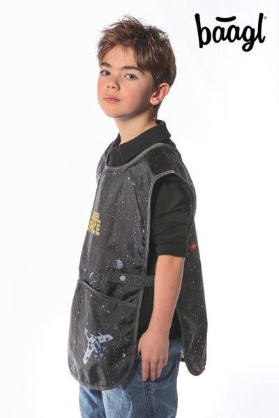 • Detská zástera na výtvarnú výchovu, pracovné činnosti a ďalšie krúžky. <br> <br> • V dolnej časti zástery sú dve vrecká. <br><br> • Vyrobené z umývateľného materiálu.