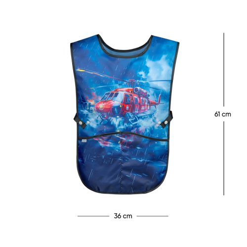 • Detská zástera na výtvarnú výchovu, pracovné činnosti a ďalšie krúžky. • V dolnej časti zástery sú dve vrecká. • Vyrobené z umývateľného materiálu.
