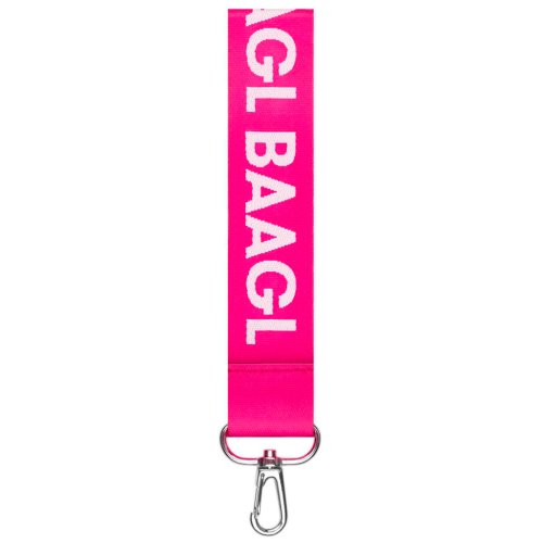 Textilný prívesok na kľúče s karabínou v ružovej farbe.