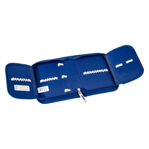 • Jednokomorové vnútorné usporiadanie s vreckom a gumičkou na uchytenie dosiek na chrbtovej strane slúži na jednoduchú organizáciu všetkých školských pomôcok.