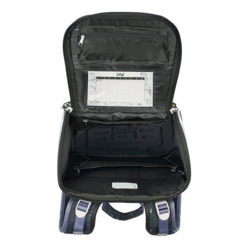 Školská súprava s vesmírnym motívom pozostávajúca z ergonomickej aktovky Zippy Plus, klasického dvojchlopňového peračníka a vrecka na obuv obsahuje všetky nevyhnutné školské potreby.
