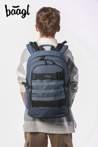 • Postranné vrecká, ideálne napríklad na tritánové fľaše BAAGL, sú vyrobené z pevného materiálu zladeného s dizajnom batohu.
