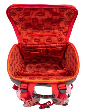 • Vnútri aktovky je priehľadné vrecko s rozvrhom a vnútorný organizér umožňujúci rovnomerné rozloženie hmotnosti, doplnený gumičkou na fixáciu.