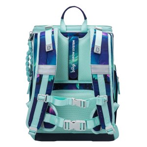 • Posuvný chrbtový systém umožňuje nastavenie aktovky na tri rôzne veľkosti, vďaka čomu taška rastie spolu s dieťaťom.