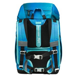 • Ergonomicky tvarovaný chrbát dopĺňajú plne nastaviteľné ramenné popruhy s priedušným polstrovaním, odnímateľný bedrový pás a hrudný popruh, ktoré zaručujú maximálny komfort, stabilitu a správne rozloženie záťaže na detskom chrbte.