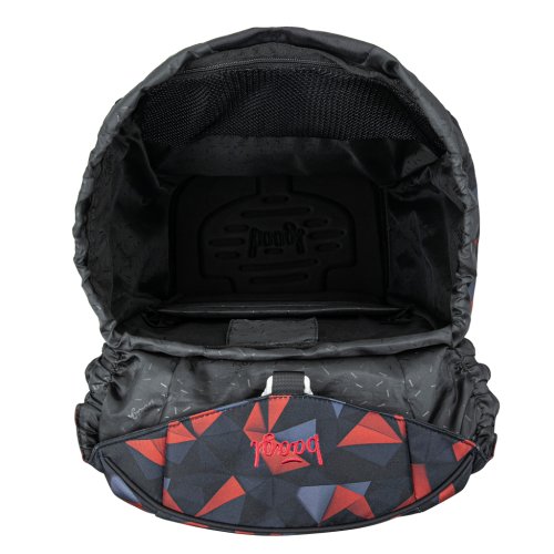 • Vnútorný priestor ponúka hlavnú komoru s prehľadným organizérom a ľahké plastové dosky na ochranu zošitov, ktoré kopírujú tvar zadného vrecka.