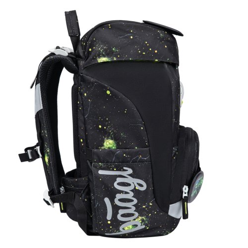 • Jednokomorové vnútorné usporiadanie s vreckom a gumičkou na uchytenie dosiek na chrbtovej strane slúži na jednoduchú organizáciu všetkých školských pomôcok.