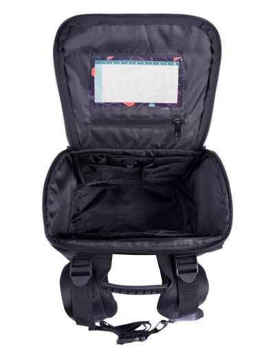 • Vnútri aktovky je priehľadné vrecko s rozvrhom a vnútorný organizér umožňujúci rovnomerné rozloženie hmotnosti, doplnený gumičkou na fixáciu.