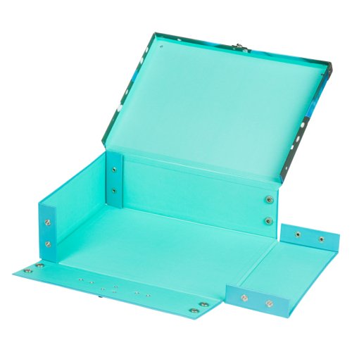 • Skladací kufrík z pevného laminovaného papiera s okovanými rohmi. • Unikátne prevedenie s patentkami, vďaka ktorým sa dajú vždy znovu zložiť a rozložiť. • Opatrené kovovým uchom a uzatvárateľné na klasickú …