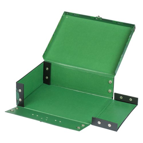 • Skladací kufrík z pevného laminovaného papiera s okovanými rohmi.